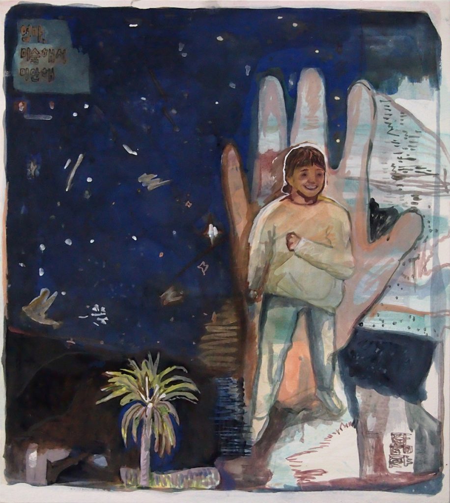 정주원, 〈엄마 미술해서 미안해〉, 2017, 광목에 동양화물감, 53x45cm ©정주원