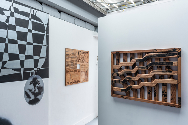 또한 “잘리고, 뿌려지고, 들어올려지거나 접히다시피한” 오브제들이 제시하는 이미지는 시각적으로 뒤엉켜 있으나, 촉각적으로는 명료하다. 이는 우드 크래프트와 영어 폰트들이 연상시키는 두께감, 아크릴과 스테인리스 스틸이 유발하는 뾰족함이 보는 사람에게 시각적 재현을 넘어 촉각적 재접촉을 요청하기 때문이다. 이러한 재접촉의 요청은 이를 테면 노스탤지어나 레트로 같은 특정 문화 현상이 가지는 시각성과 질감의 본질을 파악하고 다른 통과점을 생각해 보는 시도이다.