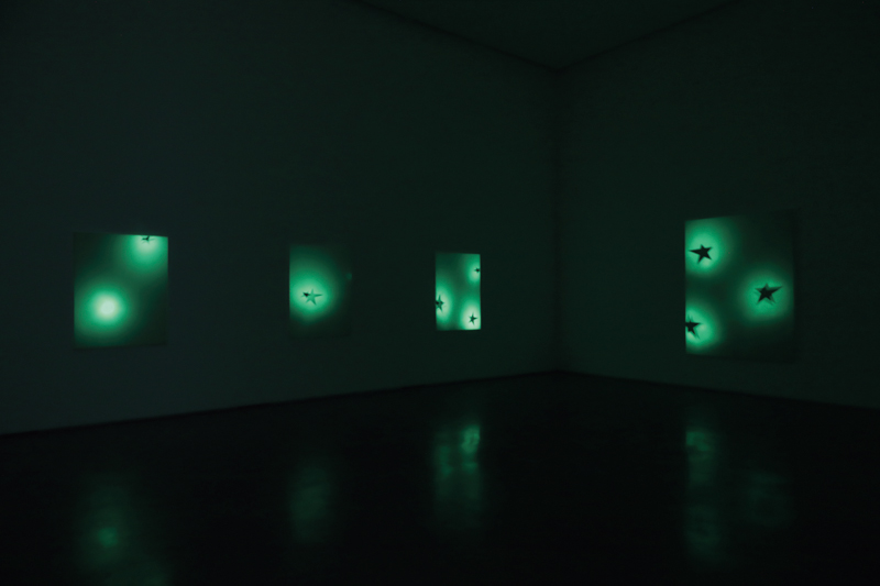Stars’는 조명의 온-오프가 반복되는 갤러리 본관 공간에 설치되었다. 평행우주*의 개념을 환기시키는 이 회화들은 밝음과 어둠 사이에서