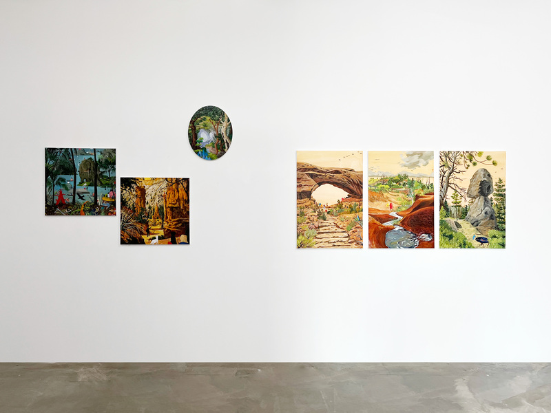 개인전 《Trip West》(2025, 시애틀)에서는 미국 서부 국립공원의 광활함과 압도적 자연을 모티브로 실재와 상상, 즉