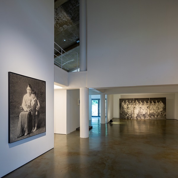 작가는 《므네모시네》를 통해 우연히 접하게 된 과거 흑백사진 속 인물들을 시공간에 현현한다. 이는 한 가족의 ‘존재했음’을 알리는 작가의 응답이자 애정 어린 애도이다. 이 가족의 이야기와 기억의 편린들은 작가의 동시대적 장치들과 뒤섞이고 중첩되며 화이트 큐브의 절제된 공간을 비가시적인 기억이 상호 침투하는 다층적 공간으로 변모시킨다.