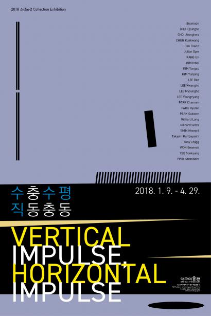 《수직충동, 수평충동》전은 우리미술관의 소장품 가운데 ‘수직’과 ‘수평’의 구조적 형태를 보이는 작품들을 선별하여 구성한 컬렉션 전시이다.
