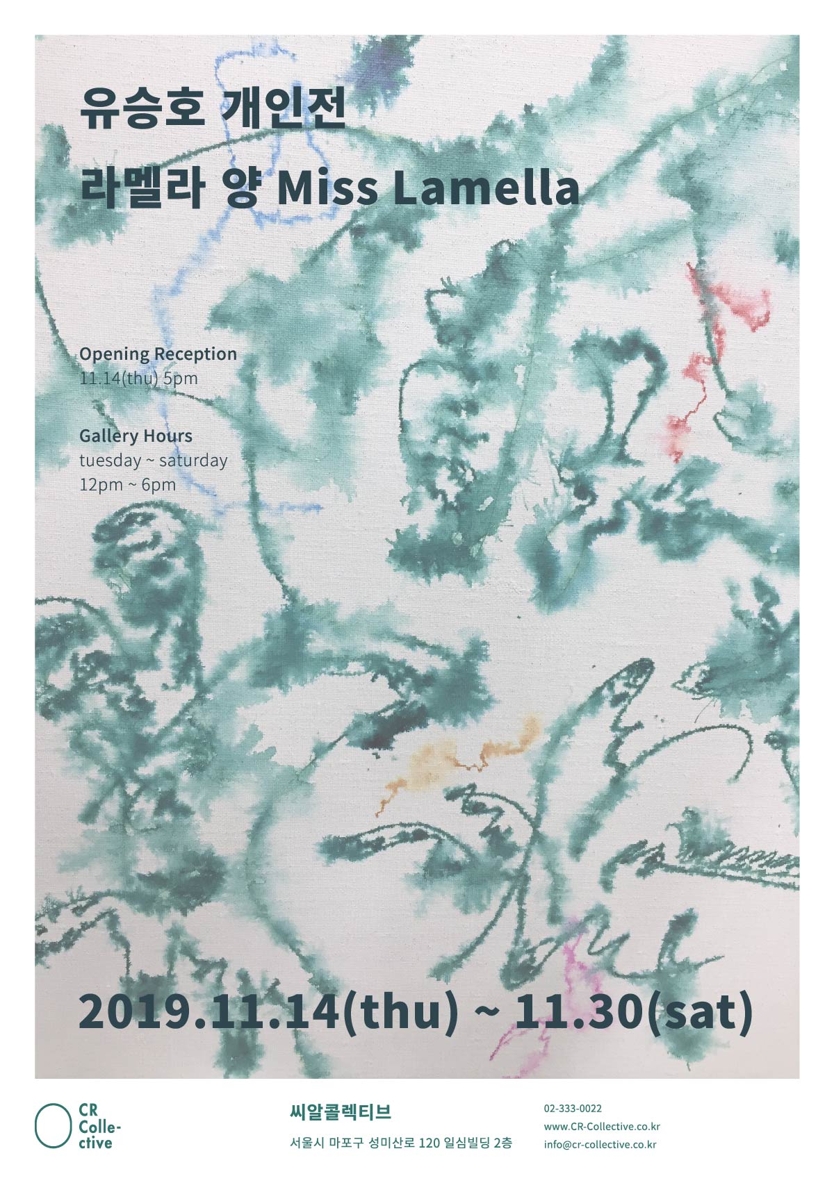 CR Collective 씨알콜렉티브는 유승호의 개인전, 《라멜라 양(Miss Lamella)》을 오는 11월 14일부터 11월 30일까지 개최한다.