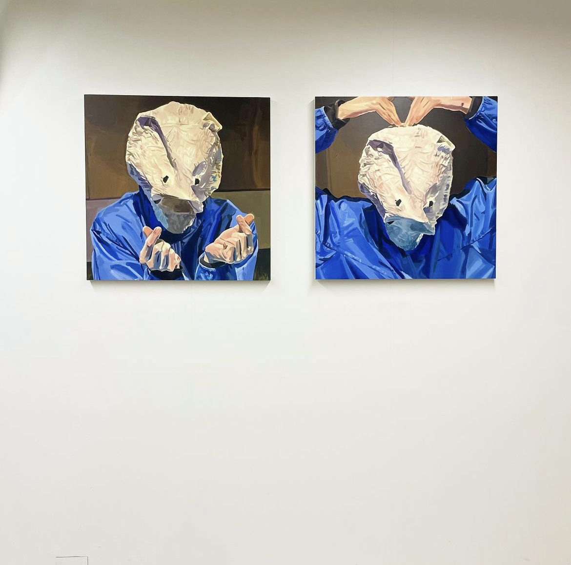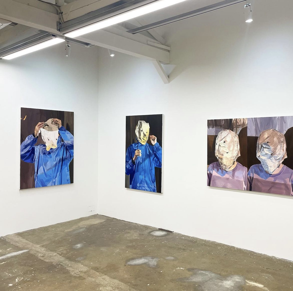 처음, 작가는 폭주족이나 컬트를 그리는 것으로 시작했다. 그러다가 점점 주변 인물들을 관찰하며 찍은 스냅 사진으로, 또 자신이 장면을 계획하고 촬영하는 연출 사진으로 변화했다. 이번 전시 작품들에선 다른 작가의 퍼포먼스 작업을 참고하여 그려졌다. 점차 먼 거리의 풍경에서, 차츰 뒷모습으로, 바라보기에서 마주보기로의 이행이 관찰된다. 대상의 거리는 점점 좁혀진다.