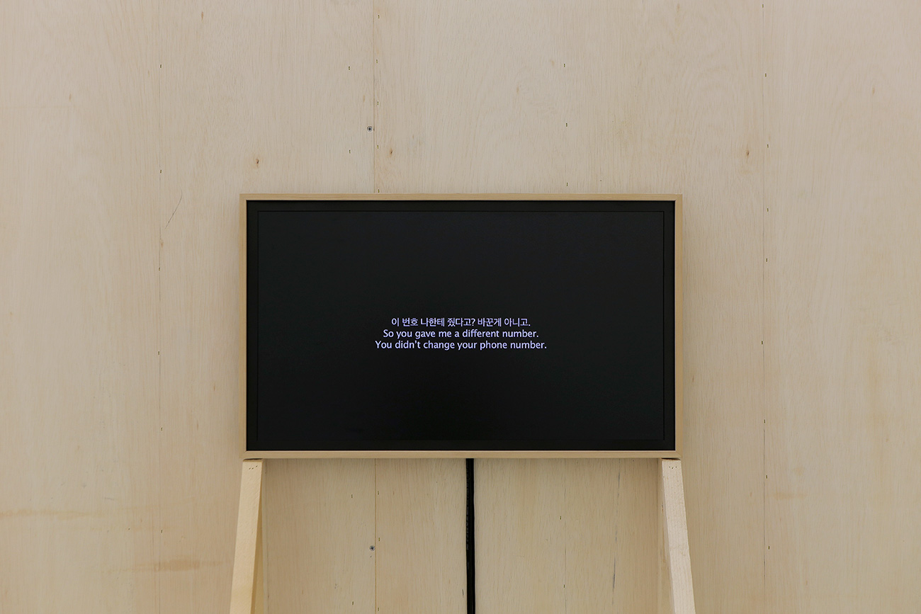 설치 (중국 브로커, 탈북자, 자막, 알루미늄, 스테인리스 스틸, 모니터, 스피커, 합판, 모래)