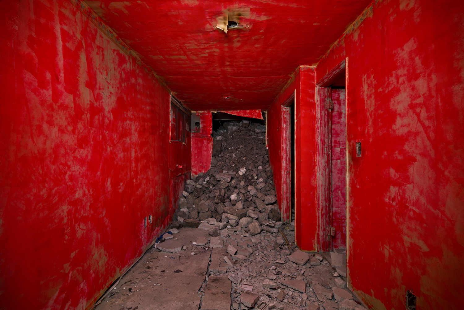 다음으로 빨강의 영역이 적절하게 프레임 안에 담길 수 있는 위치를 찾기 위해 건물 바깥으로 나가 조망의 거리를 둔다. 건물의 철거가 진행됨에 따라 붉은 방은 바깥으로 모습을 드러내고, 이내 붉은 콘크리트 조각으로 잘게 부서져 간다. 작가는 붉은 벽체가 노출된 외관을 촬영하고 내부를 기록한 사진과 함께 전시했다.