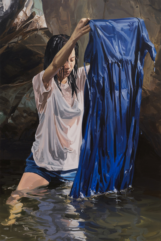 화면에는 푸르스름한 색면, 비현실적인 시선, 순간을 붙잡은 듯한 붓질의 리듬이 펼쳐지며, 정적인 평면에서 시간의 물성을 불러낸다. 최근에는 북유럽 신화 속 인물이나 신화적 서사를 인물의 행위로 연결하며, 초현실적 감각을 밀도 높은 시각 언어로 풀어내는 작업으로 확장되고 있다.