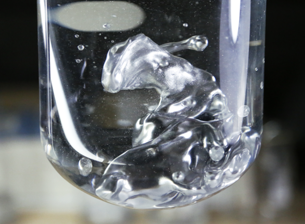 바라캇 컨템포러리 개인전에서 선보인 작품 〈Coptic Light〉(2019)에서는 물질의 구조적 잠재성에 주목한다. 하이드로젤의 분자구조를 변형시켜 빛을 굴절시키는 방식은, 물질이 인간의 개입 없이도 자율적으로 색을 생산할 수 있음을 보여준다. 이어 〈태양들의 먼지〉(2022)에서는 돌을 나노 입자로 분쇄해 ‘구조색’을 구현함으로써, 물질의 자기생성적 성질을 과학적 언어와 예술적 감각 모두로 증명한다.
