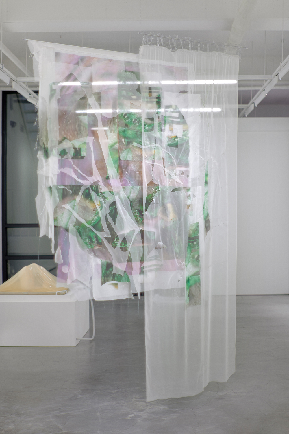 작가는 다양한 재료와 설치 방식을 결합하여 사진이라는 매체에 대한 독특한 접근을 보여준다. 《오토힙노시스》(지갤러리, 2023)에서 발표한 Morningside Park Snail (2023), Web(in Pink, Green and 0) (2023), Snail(Void) (2023)와 같은 작품들은 벨벳, 실크, 보일, 면, 메쉬 등 다양한 질감과 두께를 가진 천 위에 이미지를 인쇄하고, 각 재료적 속성에 따라 조형화하여 설치하였다. 특히 반투명 소재의 패브릭 활용은 사진 이미지가 고정된 형태가 아닌 유동적 공간 속에서 변화하는 감각을 강조하였다.