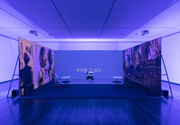 무니페리는 사회문화적 맥락이 만들어 내는 다양한 알레고리와 담론을 탐구해 왔다. 그 중에서도 작가는 A와 B 중 어느 쪽에도 속하지 않는 소위 ‘이중 구속’ 존재라는 개념을 탐구해 오며, 사회의 주류적 시선에서 배제된 존재들을 리서치 기반의 영상 작업으로 가시화해오고 있다.