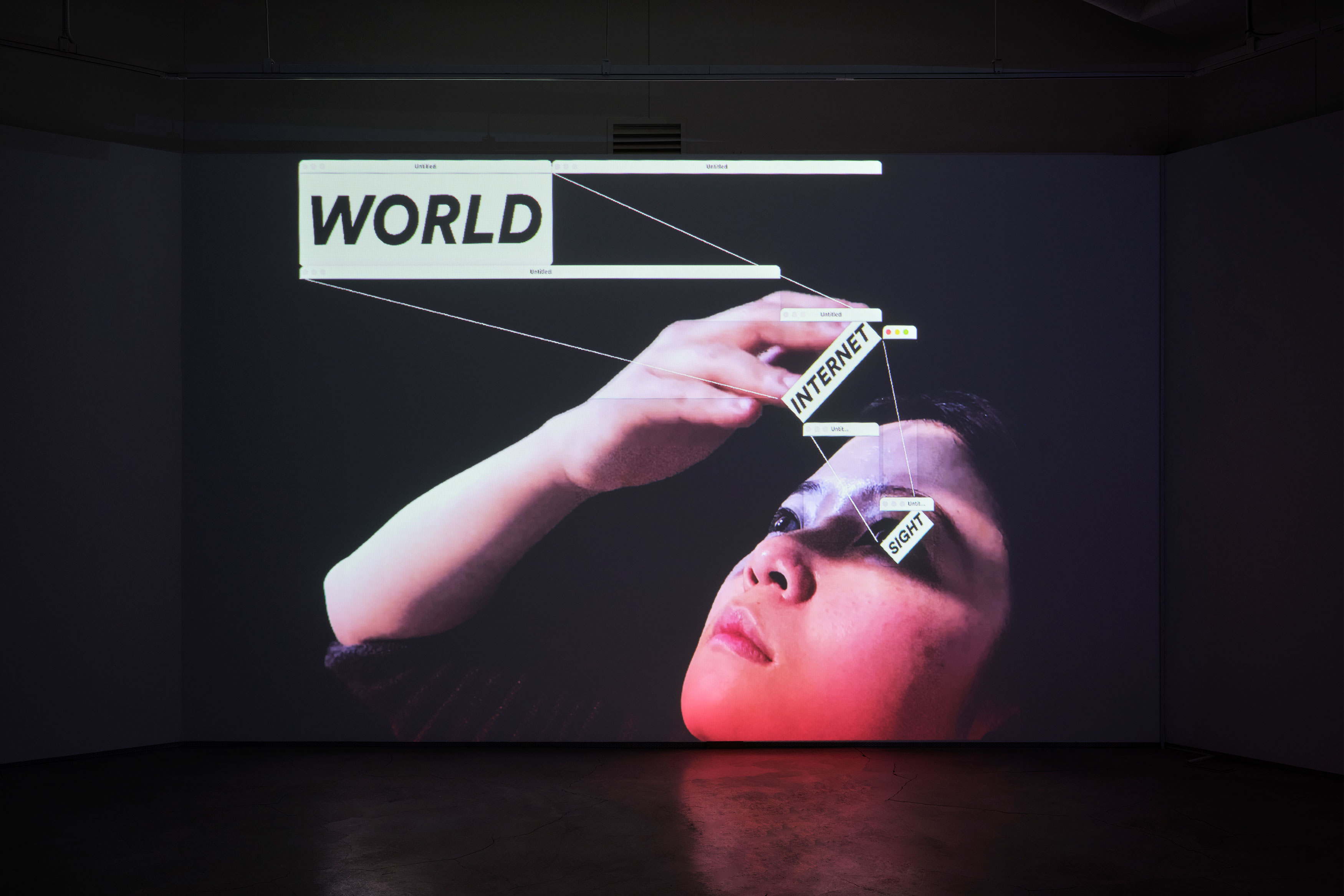 이후 아르코미술관에서 선보인 〈woldeu waideu〉(2022)에서는 웹이 만들어내는 통합적 네트워크가 실질적으로는 사용자마다 다른 조건과 환경 속에서 작동함을 시각화한다. 폼보드에 투사된 서로 다른 압축률의 영상들은 웹이 표면적으로는 글로벌한 통합을 약속하지만, 실제로는 불균형과 정보 격차를 강화하고 있음을 드러낸다. 이러한 문제의식은 인터넷 환경을 지배하는 알고리즘 권력의 구조적 편향성으로 확장된다.
