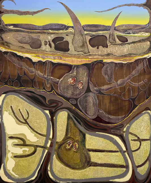 Mass_series No.7(2023)와 같은 작품은 외적 정체성을 배제하고 재조합된 신체를 통해, 인간 존재에 내재된 감정과 생물학적 평등성을 비추고자 한다. 이후 작가는 신체 내부 구조를 자연 지형에 비유하는 상상력으로 확장하며, 땅속 단면과 인체 단면, 식물의 뿌리 구조를 연결하는 새로운 회화적 세계를 구성한다.