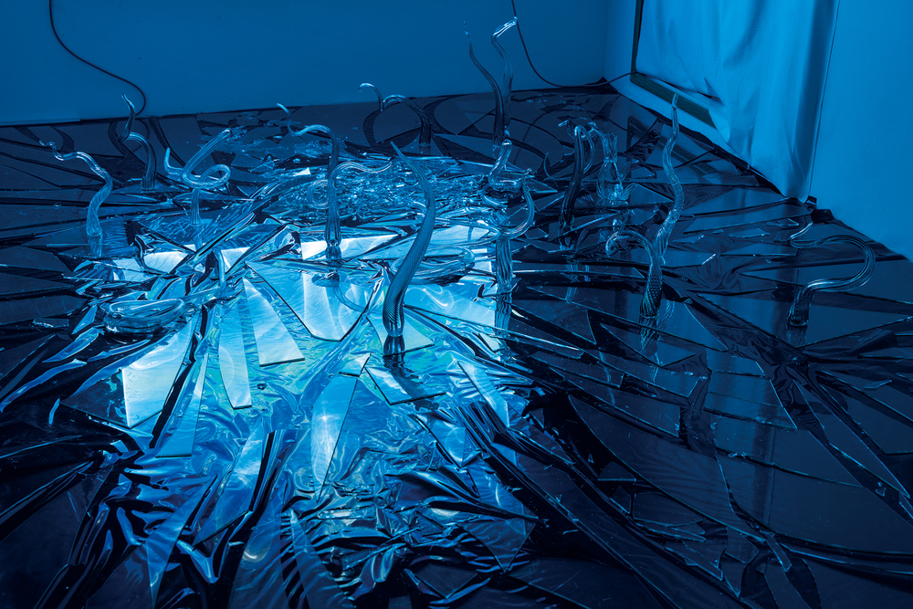 흔적과 죽음의 증거가 만나는 지점에 대한 상상을 전개했다. 여기서 유리는 멸망 이후의 풍경을 담는 동시에, 다시 살아날 수 있는 가능성을 품은 매개물로 등장한다. 이는 Liquid Veil과 같은 최근 작업에서도 이어지며, 투명성이라는 개념이 인식의 경계와 의미 생성의 메커니즘으로 작동함을 탐색한다.