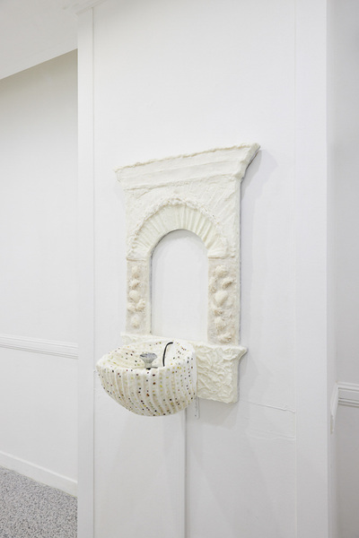 이후 작가는 물, 모래, 왁스 등 유동적이고 불안정한 재료를 활용해 시각적 감각과 촉각적 경험을 결합한다. 예를 들어, 〈Wall Fountain〉(2022)이나 〈Buried Temple〉(2022)은 물의 흐름과 왁스의 질감을 활용하여, 정지된 오브제 안에 시간성과 운동성을 부여했다. 이러한 작업들은 재료의 성질 자체가 조각의 의미를 전환시키는 장치가 되며, 물질과 풍경의 상호작용을 드러낸다.