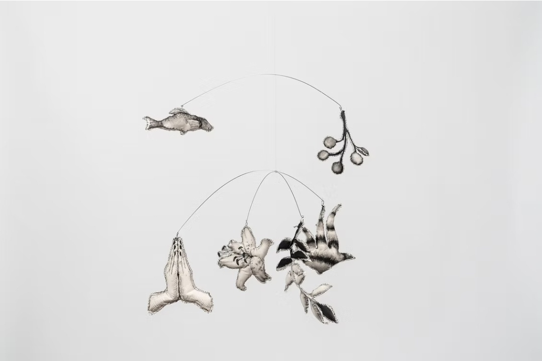 내용적 대상 역시 신체 파편에서 모성-식물-비인간 결합체, 그리고 잠정적 주체로 이동한다. 최근 작업 〈Black Figurine 2〉는 다리와 꽃의 결합으로 출산과 생장을 단일 형상에 병치하고, 최근 개인전 《살과 섬광》은 실·광목·먹의 층을 “섬광”처럼 쌓아 몸-장면-시간이 교차점에서 순간적으로 결절되는 사건적 표면을 만든다.