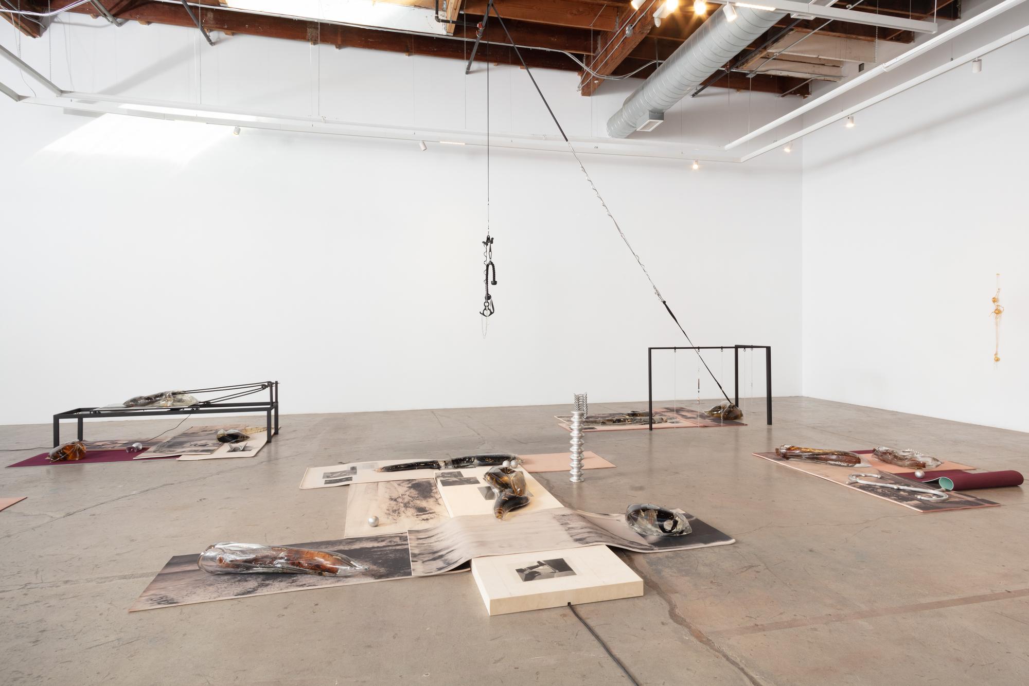 2023–2024년의 ‘L’Oriental’ 시리즈와 ‘I Was Placebo’ 시리즈에서 유해나는 물성 실험의 방향을 다시 유리·알코올·약재·장신구·의료기구 등으로 좁히며, 보존과 부패·욕망과 치료·신체와 기계가 충돌하는 조형적 언어를 발전시킨다. 특히 ‘I Was Placebo’의 유리 구체는 의료용 가위·집게·리트랙터가 유기물과 접촉하는 구조를 통해, 신체를 다루는 의료 장면과 사적 욕망의 물질성을 하나의 용기 안에 묶어낸다. 《Self Love Club》에서는 요가 매트, 마사지 기구, 운동 도구, 허브·버섯·보충제 등 웰니스 산업의 물질들이 조형의 표면과 구조로 확장되며, 몸·산업·역사가 혼란스럽게 뒤얽히는 감각적 환경을 구성한다.