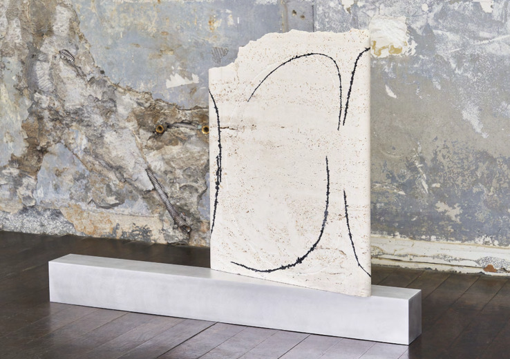 이러한 태도는 돌이라는 재료를 본격적으로 다룬 《Ongoing Track: 미래와 모양》에서 더욱 분명해진다. 이 전시에서 제시된 돌 조각들은 덩어리이자 판이며, 곡면과 평면을 동시에 지닌 상태로 제시된다. 정으로 남긴 점과 선, 연마를 통해 드러난 내부의 색은 조각의 결과이자 과정의 기록으로 기능하며, 돌이 지닌 시간성과 물질성을 시각적으로 드러낸다.