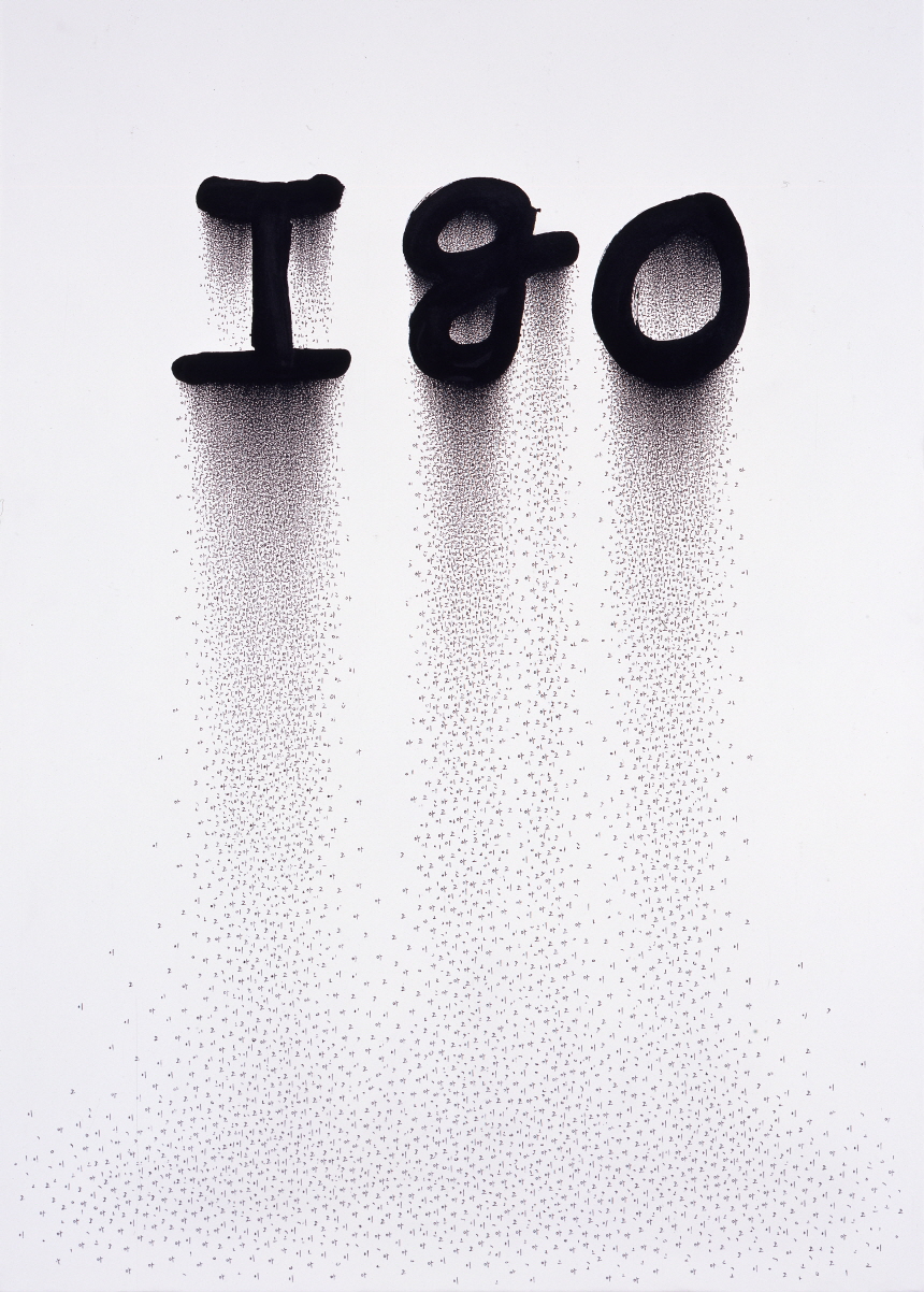 그는 자신의 상상력과 연상 작용에 의지해 펜으로 화면에 아주 작은 단어를 반복해 적음으로써 이미지를 구성한다. 예컨대, 그의 대표 연작 ‘문자산수’는 의성어나 유아적 문구처럼 특별한 의미가 없는 단어, 완성된 풍경과도 무관한 단어를 깨알같이 작게 반복해 적어 중국 산수 풍경을 완성한다.