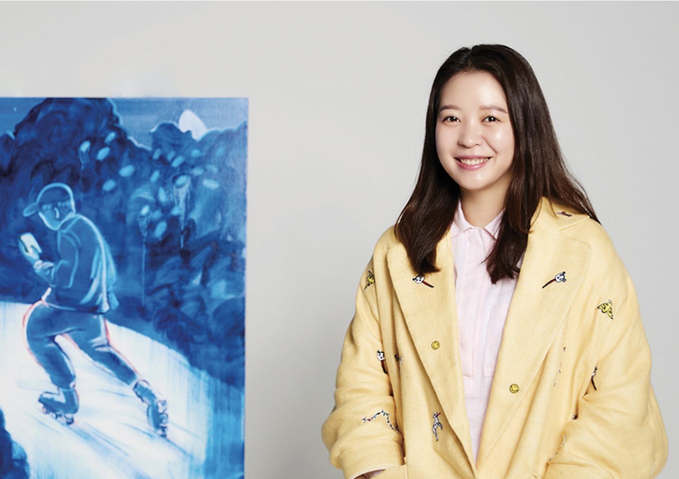 〈Ice-cream Eater〉(2019)나 〈On the blinking hill〉(2021)에서 보이듯, 밝고 애니메이션을 연상시키는 외형과는 달리 화면 안에는 불안, 죽음, 부재와 같은 주제가 은근히 스며 있다. ‘소년’, ‘무덤’, ‘하얀 새’와 같은 반복적 도상은 고정된 상징이라기보다 유동적으로 변형되는 존재로 남겨진다. 이처럼 표면의 친숙함과 내면의 전복적 요소 사이의 간극은 작가의 형식적 전략이기도 하다.