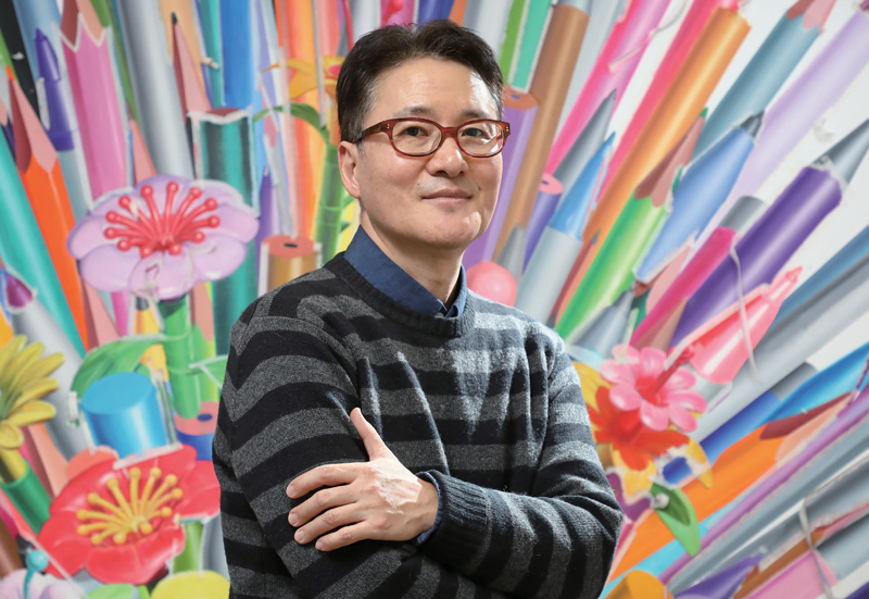홍경택은 펜, 연필, 책 등 일상적인 소재로 현대인의 집착적인 욕망이라는 주제의 작업을 오래 해왔다. 형형색색의 원색으로 캔버스를 채운 ‘연필’ 또는 ‘펜’은 “순간적인 화려함, 훔쳐보기의 장치들, 유아적이고 촉각적인 물건의 배치, 이들은 에로틱함과 함께 그의 부산물인 공허를 이끌어” 내는 장치다.
