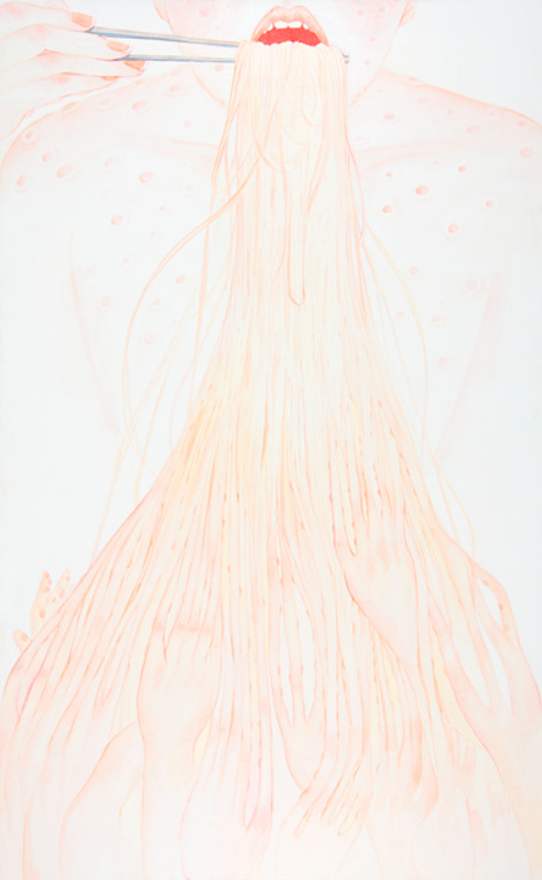 김은설의 작업은 ‘듣는다’는 감각에 대한 근본적인 질문에서 출발한다. 보청기를 사용하지만 청각에 의존하기보다 시각과 촉각 등 다른 감각을 통해 세계를 인식해온 경험은, 소리와 언어를 고정된 체계가 아닌 감각적 관계로 이해하게 만든다. 초기 작업 ‘풀실놀이’(2016~) 연작과 개인전 《풀실놀이》(룬트갤러리, 서울, 2019)에서 드러나듯, 그는 사람들 사이에 보이지 않게 오가는 관계를 끈적한 실의 형태로 치환하며, 관계 맺음의 불안정성과 반복성을 탐구한다. 이때 ‘붙고 떨어지는’ 행위는 단순한 물리적 상태가 아니라, 인간 관계의 미묘한 긴장과 감정의 흐름을 드러내는 장치로 작동한다.
