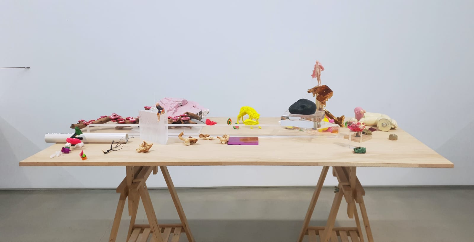 최근에는 굳이 인간의 형상을 재현하지 않고도, 다양한 재료들을 사용한 추상적인 조각으로 인간의 본질을 상징적으로 탐구하는 실험을 시작했다. 〈모두 다 흥미로운〉(2016)은 서로 그 형태와 크기가 상이한 광물을 조합하여, 개별적 존재들의 주체성과 관계성, 그리고 그들이 모인 사회 내지는 세계를 은유했다. 이러한 성찰은 은색 오브제들의 상이한 텍스처와 표면이 두드러진 최근 작업 〈빛나는〉(2024)에서도 이어진다.