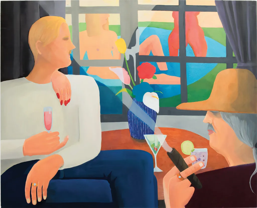 최근 페로탕 뉴욕 개인전 《Fun and Games》(2024)에서는 인물과 사물들을 보다 분열되고 복합적인 방식으로 다루면서 회화라는 매체가 가지는 형식적 확장성에 대해 탐구한다. 〈Under Cover〉(2023)는 정물화 같은 구성을 띠지만, 가슴을 내어놓은 여성 앞 테이블 위에 해부된 생선과 레몬 그리고 칼이 수직으로 내리꽂힌 상태로 묘사되면서 묘한 불안감과 초현실주의적인 분위기를 자아낸다.