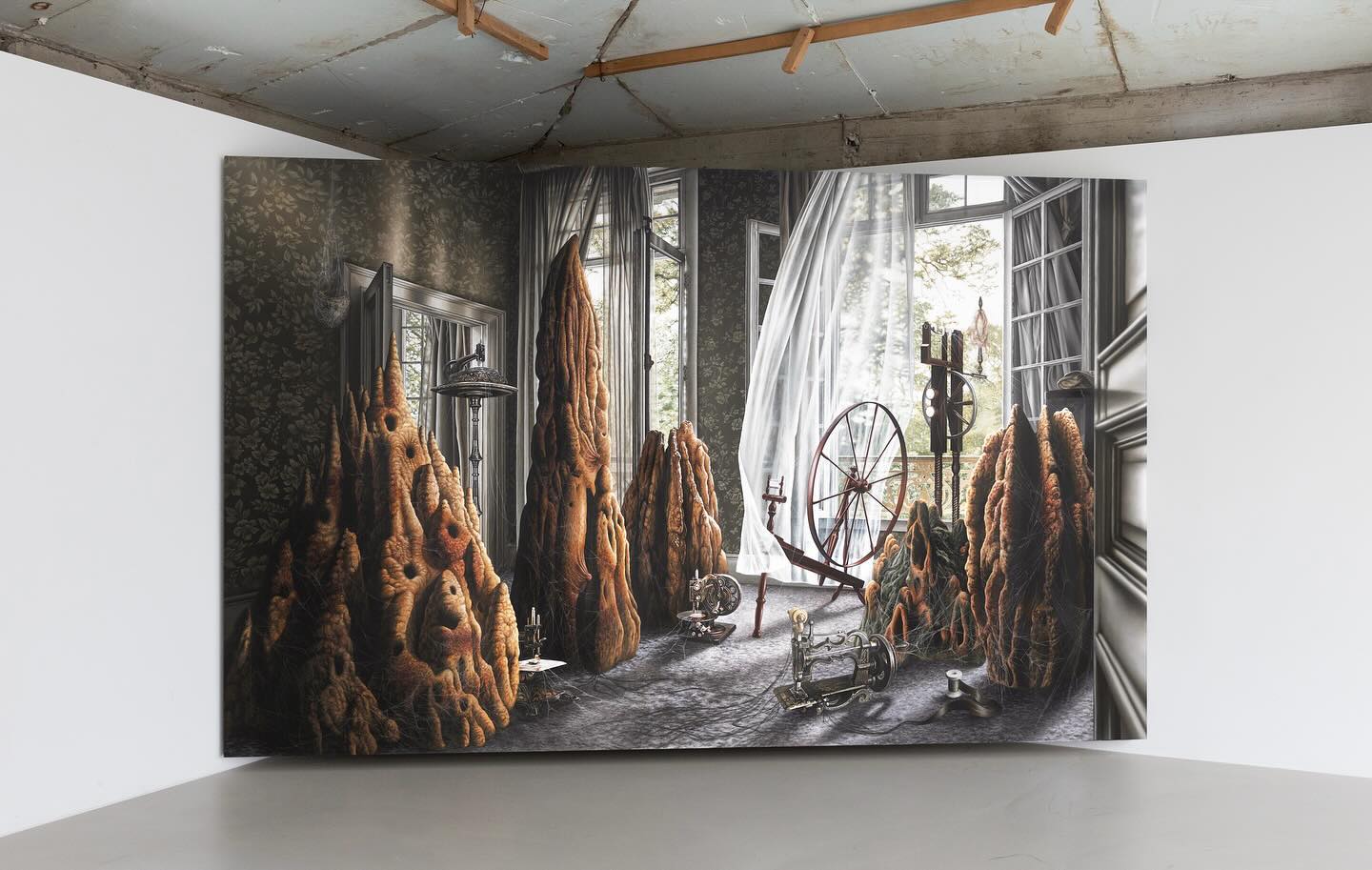〈직공들의 방〉(2024)은 파편화된 여성 신체를 연상시키는 거칠고 주름진 덩어리들을 서구 건축 양식과 앤틱 소품 등의 오브제와 혼합하여 여성 노동의 오랜 역사를 반추하게끔 한다. 작가의 최근 작업들은 이미지와 신체가 모두 소외되는 디지털 시대에 회화가 어떻게 촉각적 경험의 환기를 가능하게 할 수 있는지 질문하게 만든다.
