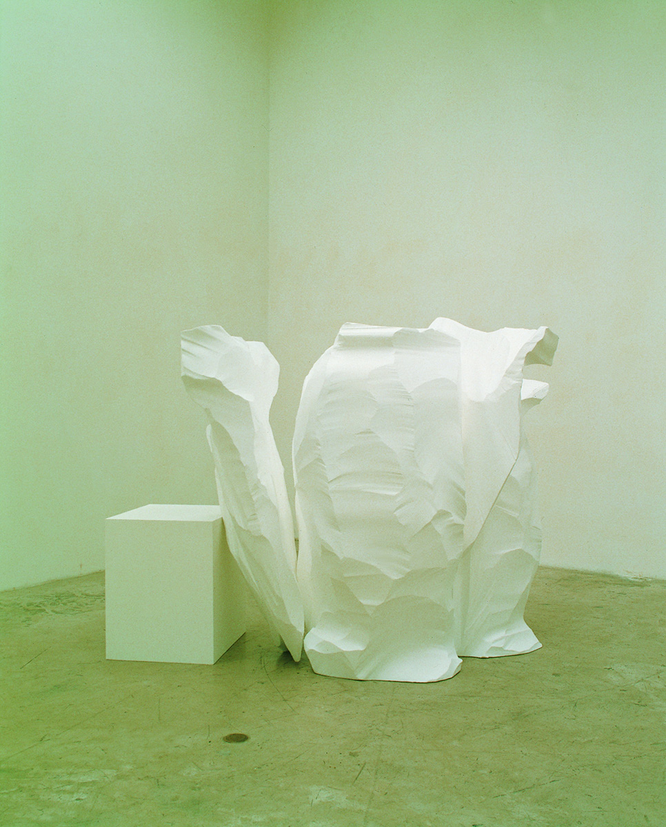 〈새로운 삶〉에서는 조각적 상태가 공간적 개입으로 확장된다. 숨겨진 출입구를 드러내고, 기둥을 위장하는 〈새로운 기둥〉(2003)을 통해 작가는 공간 구조 자체를 조형의 일부로 전환한다. 이는 물리적 변형을 넘어 사회적, 심리적 지각의 변환을 촉발하는 ‘공간적 조각’의 시도로 읽힌다.