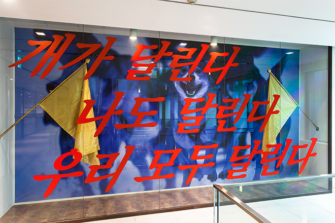 또한 그는 이미지와 텍스트의 병치를 통해 독해를 요구하는 구조를 만든다. 관객은 단순히 시각적 쾌락을 소비하는 존재가 아니라, 읽고 해석해야 하는 주체가 된다. 작품은 하나의 시각적 장치이자 사유의 장이며, 관람 행위는 감상이 아니라 참여에 가까워진다.