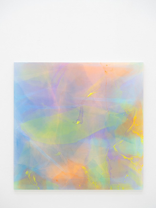작가는 붓질을 통해 이미지를 만들지 않는다. 대신 빛이 스며들 수 있는 구조를 설계한다. 얇게 겹쳐진 층들은 서로를 지우고 드러내며 일정한 형태를 갖지 않는 진동을 만든다. 이 진동은 보는 위치와 조명에 따라 달라지며, 하나의 작품이 여러 상태로 경험된다. 화면은 고정된 이미지가 아니라 지속적으로 변하는 조건이 된다.