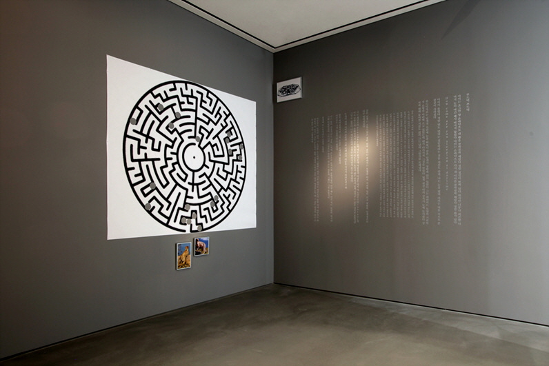 〈픽톤 파라다이스〉(2004), 〈그림자 호수〉(2005)에서는 병풍이라는 동양화적 형식을 차용해 다중 이미지와 서사를 수용 가능한 구조로 활용했다. 병풍은 단순한 회화적 지지체를 넘어, 회화·조각·설치·영상을 통합하는 복합적 플랫폼으로 작동하며, 사건의 파편적 조각들을 조형적으로 엮는 서사 장치로 기능한다. 이러한 확장은 이후 《YOU, Live!: 12개의 문고리》에서 연극-전시라는 다매체적 플랫폼으로까지 발전하게 된다.