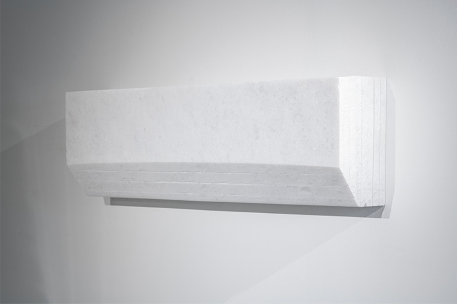 최고은의 조형언어는 일상 속 기성품의 구조를 해체하고, 그 본질을 드러내는 방식으로 작동한다. 초기 작업인 <머터리얼 풀>(2016-)에서는 냉장고, 에어컨 등 백색 가전을 수집해 수평 구조로 재조립함으로써, 일상의 규격화된 질서를 전복하는 시도를 보여주었다. 이어지는 <화이트 시리즈>(2018)는 외관상 거의 동일한 스탠딩 에어컨들을 해체해 벽면에 세워 놓고, 그 미묘한 색상 차이와 크기의 편차를 통해 표준화된 제품이 가진 차이를 가시화했다.