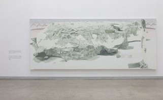 《선산》에서는 유채 위 오일 파스텔을 덧입혀 풍경을 뭉개고 지워내는 방식을 활용한다. 이를 통해 대상과 주체 모두를 흐릿하게 지우며, 몽환적이고 서정적인 분위기 속에서 현실과 기억, 실재와 허구가 중첩된 비정형적 풍경을 창출한다.