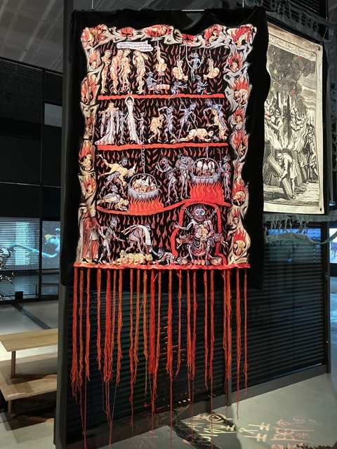 〈에프에프36(FF36)〉(2019)와 〈환영〉(2019)에서는 레이저컷 스테인리스 스틸, 디지털 프린트 천, 부적 등 이질적 재료를 혼합해 주술성과 정치성을 동시에 담았다. 이러한 재료 사용은 불의 시각적 재현과 의례적 상징을 강화하며, 감각적이면서도 상징적인 공간을 형성했다.