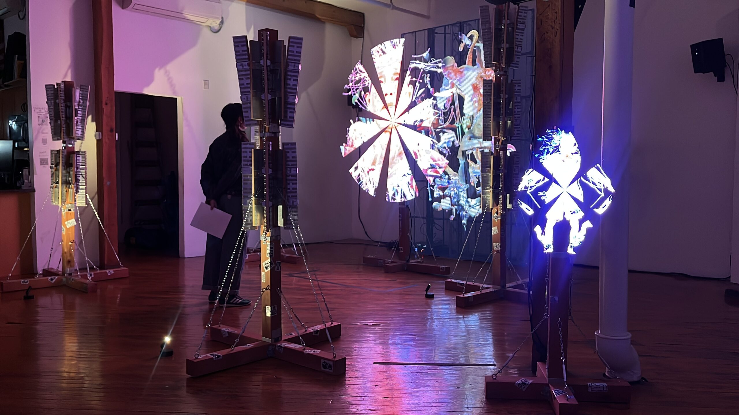 ‘신인호’ 연작에서는 홀로그램 팬, 3D 스캔, 목판 기둥 조각(모듈러 자재), 사운드스케이프·텍스트가 접속하여 선창/도크의 상징계를 구성한다(〈신인호 월드 투어〉(송은, 2024); 《신인호 도킹》(RIP Space, 2025)). 또한 〈반짝반짝 플라스틱 엔딩〉2023) 같은 미디어 파사드는 더현대 서울의 대형 공공 스크린을 서사 확장의 무대로 활용한다.