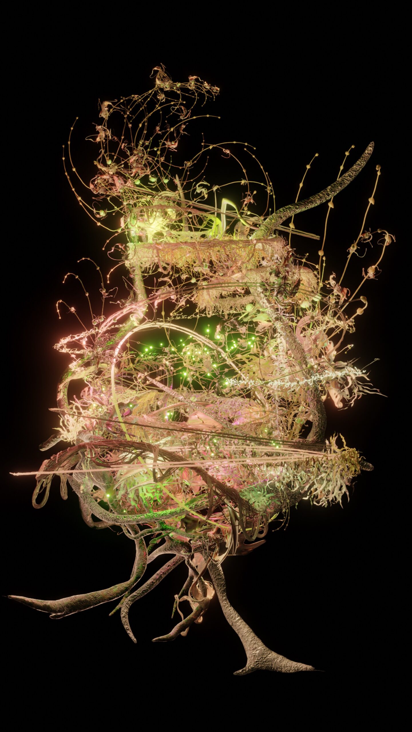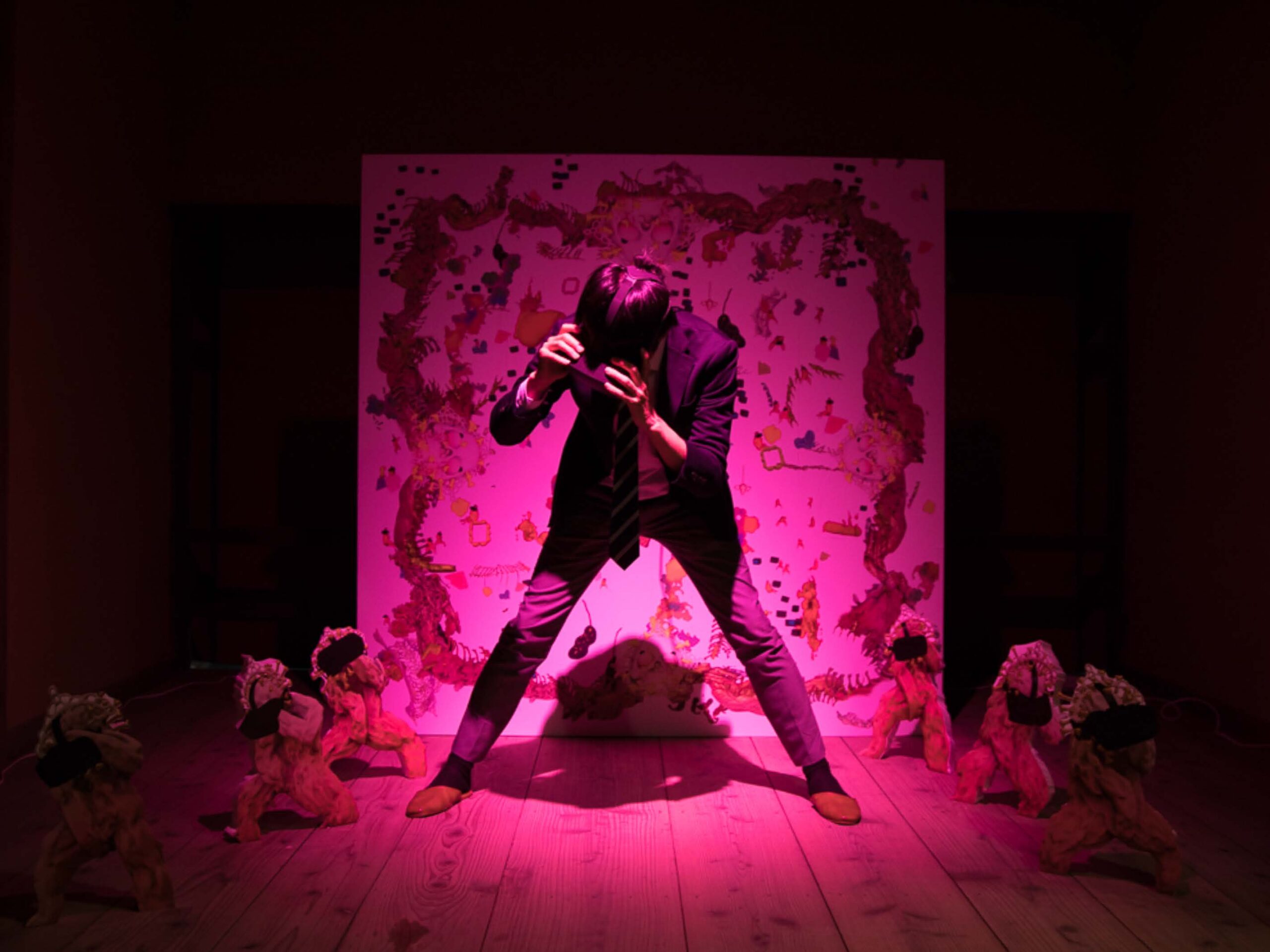 이후 작가는 개인적 체험과 지역 리서치를 ‘상상 고고학’으로 확장한다. 〈얄루 성터, 상상 고고학〉(2018–2019)은 야마카사 축제, 약국 진열의 현대적 여성성, 캐널시티의 백남준 작업 등 로컬 단서들을 수집해 가상의 유물을 만든 뒤, 후쿠오카성 내부에 투사·설치하여 개인 서사를 지역의 기억·전설과 접속시키는 서사적 스케일을 확보한다. 관객은 일렬의 방을 통과하며 사적 기억이 ‘공적 서사’로 증폭되는 과정을 따라간다.