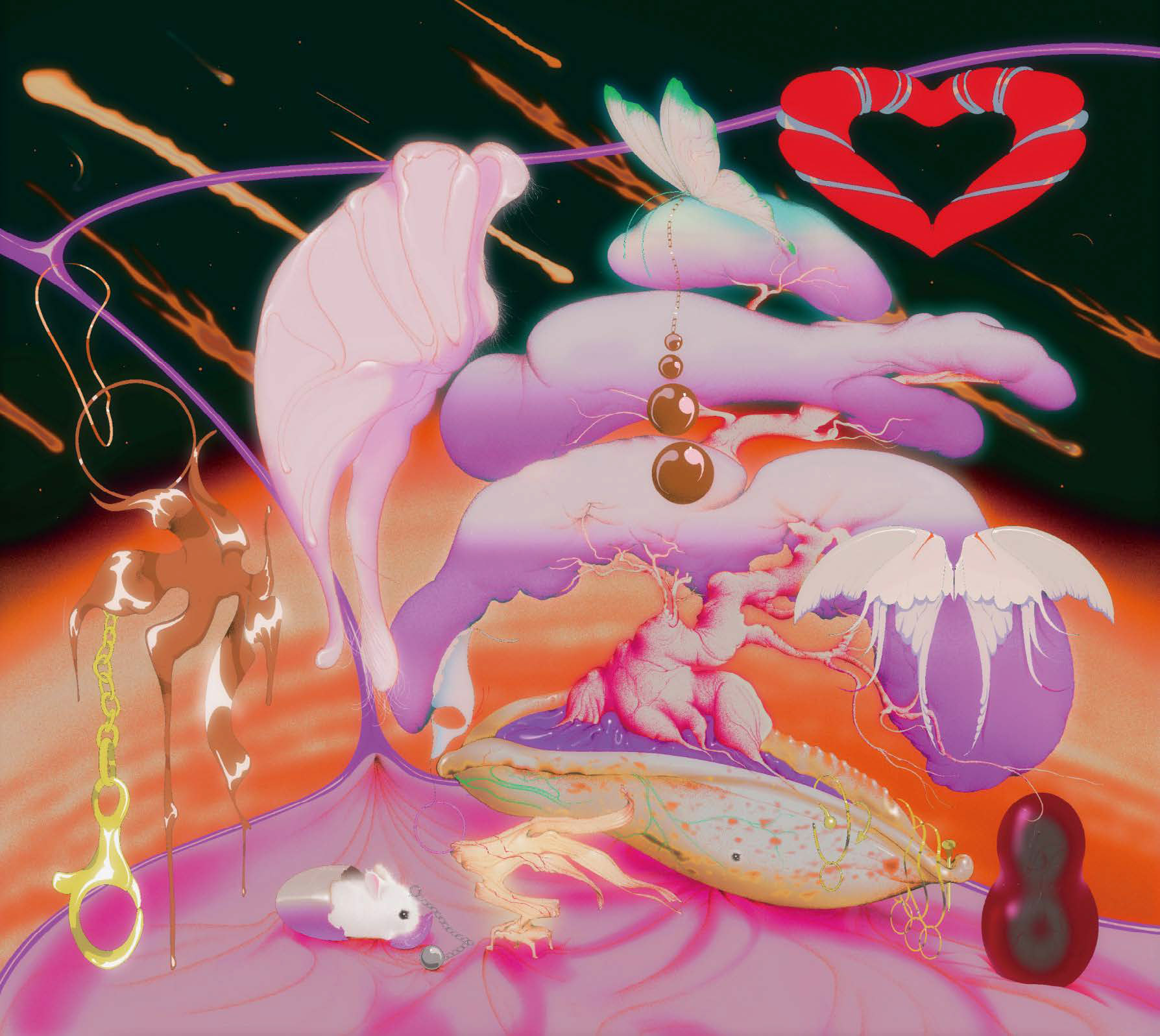 듯 광택을 내고, ‘Case’ 연작(2020 )과 ‘Sky’(2022) 등에서 표현되듯 인간과 동식물이 결합해 하나의 신체를 공유하는 형상을 그려낸다. 람한의 작품세계에서 교감은 성과 종을 초월한 차원에서 이루어진다. 외계인과